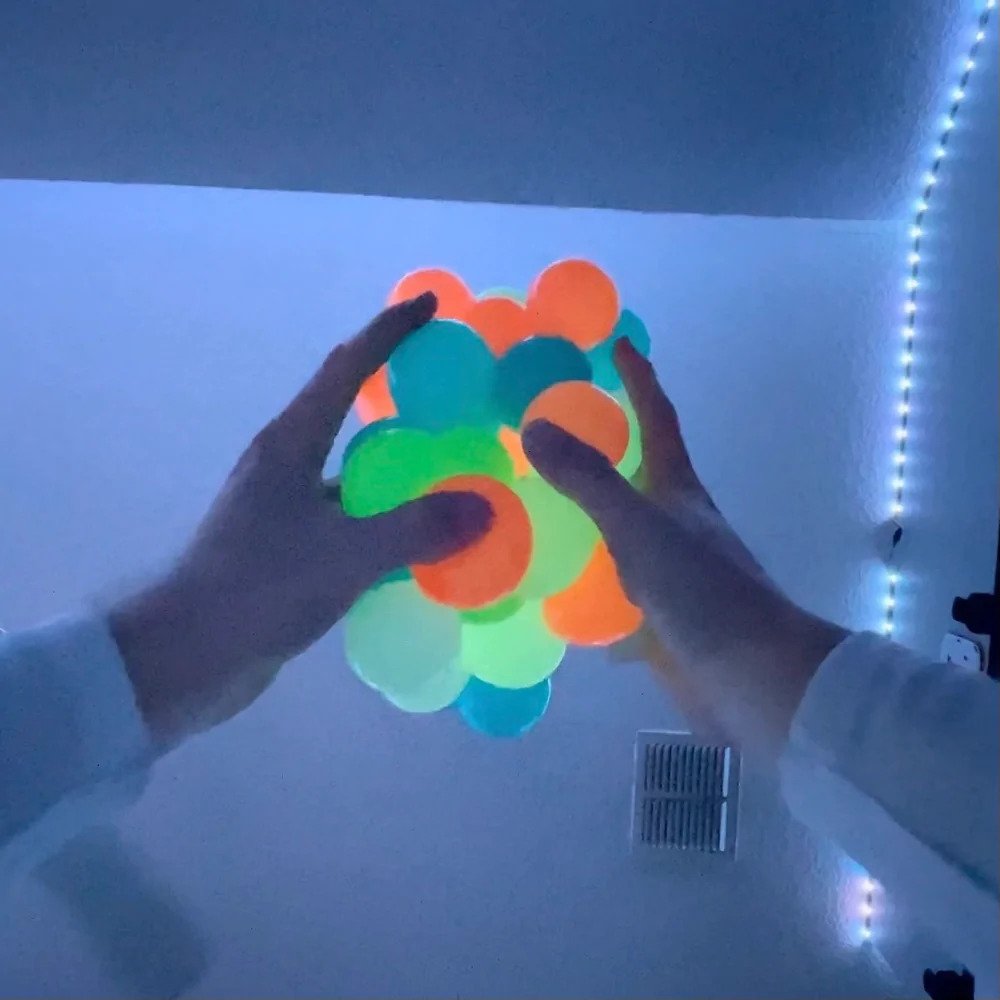 Das fluoreszierende Design des klebrigen Balls kann Licht absorbieren, egal ob Sonnenlicht oder das Licht einer Taschenlampe, es kann es absorbieren und speichern. Dann leuchten sie im Dunkeln und bringen viel Spaß.
