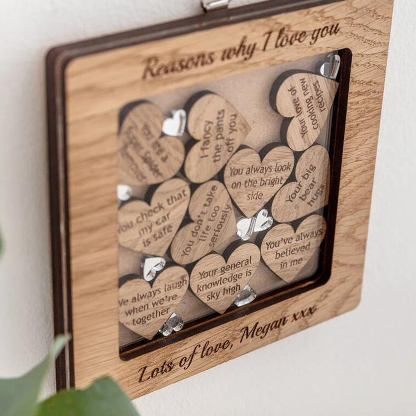 „Ich liebe dich“ gesagt zu bekommen, ist natürlich etwas ganz Besonderes, aber genau gesagt zu bekommen, warum dich jemand liebt, aus 10 verschiedenen Gründen, und es in einem Rahmen zu zeigen, den du für immer schätzen und bewundern kannst, ist eine weitere Stufe der Herzschwellung.