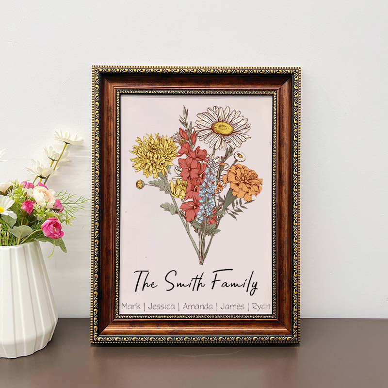 ✨50%OFF✨Birth Flower Family Bouquet Personalized Names Frame✨
