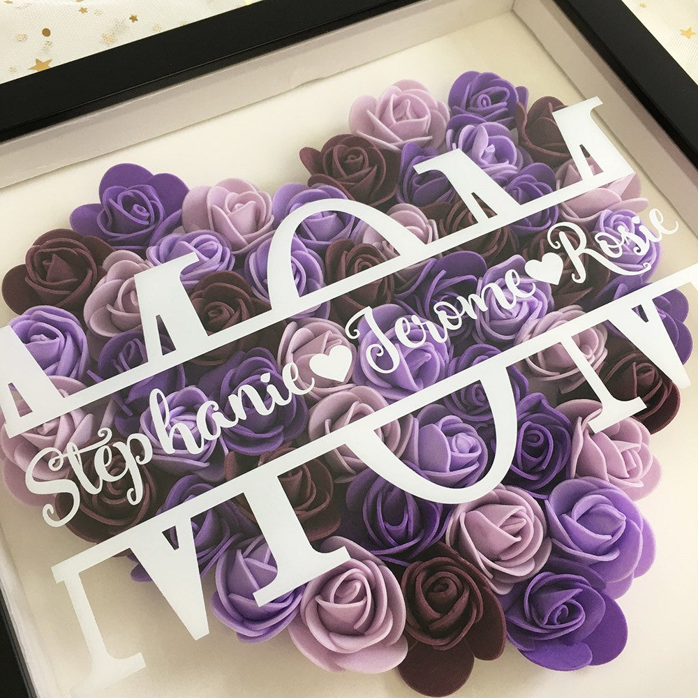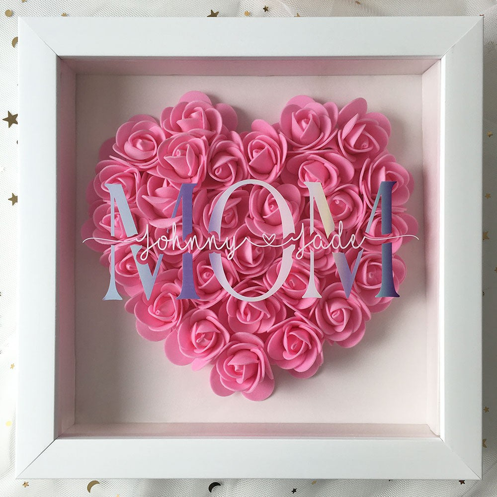 Surprise your mother with a beautiful personalized flower shadow box and keep a special memory.