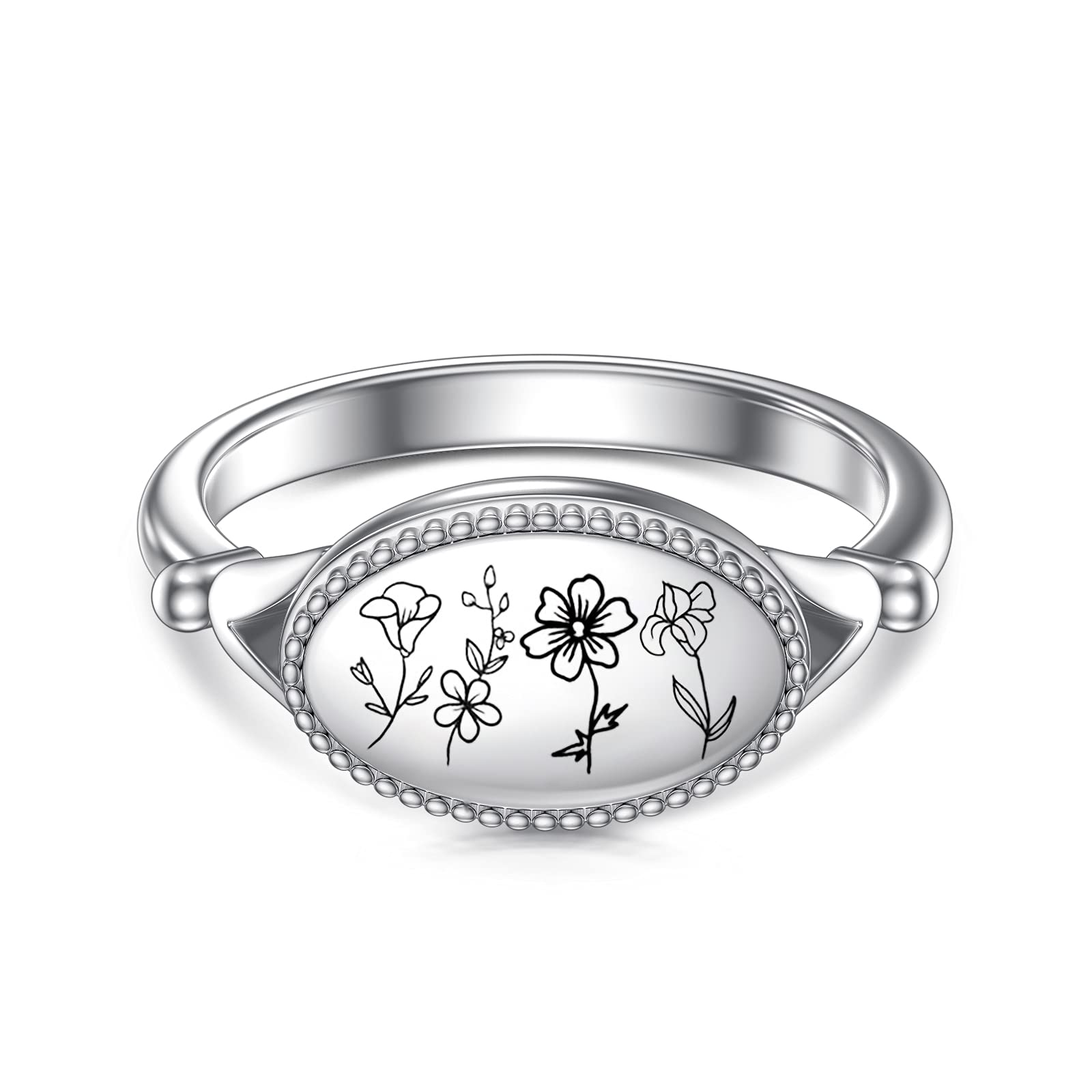 -Choose 1/2/3/4 different birth month flower to engrave for this personalized ring.