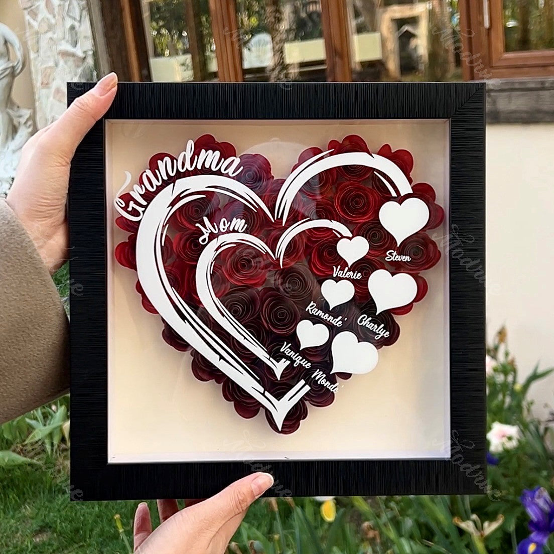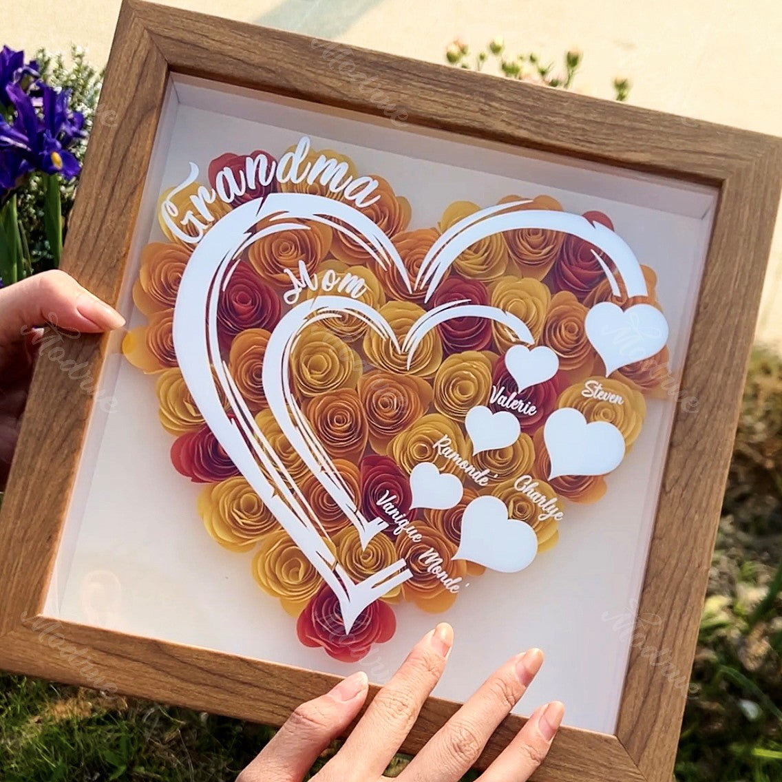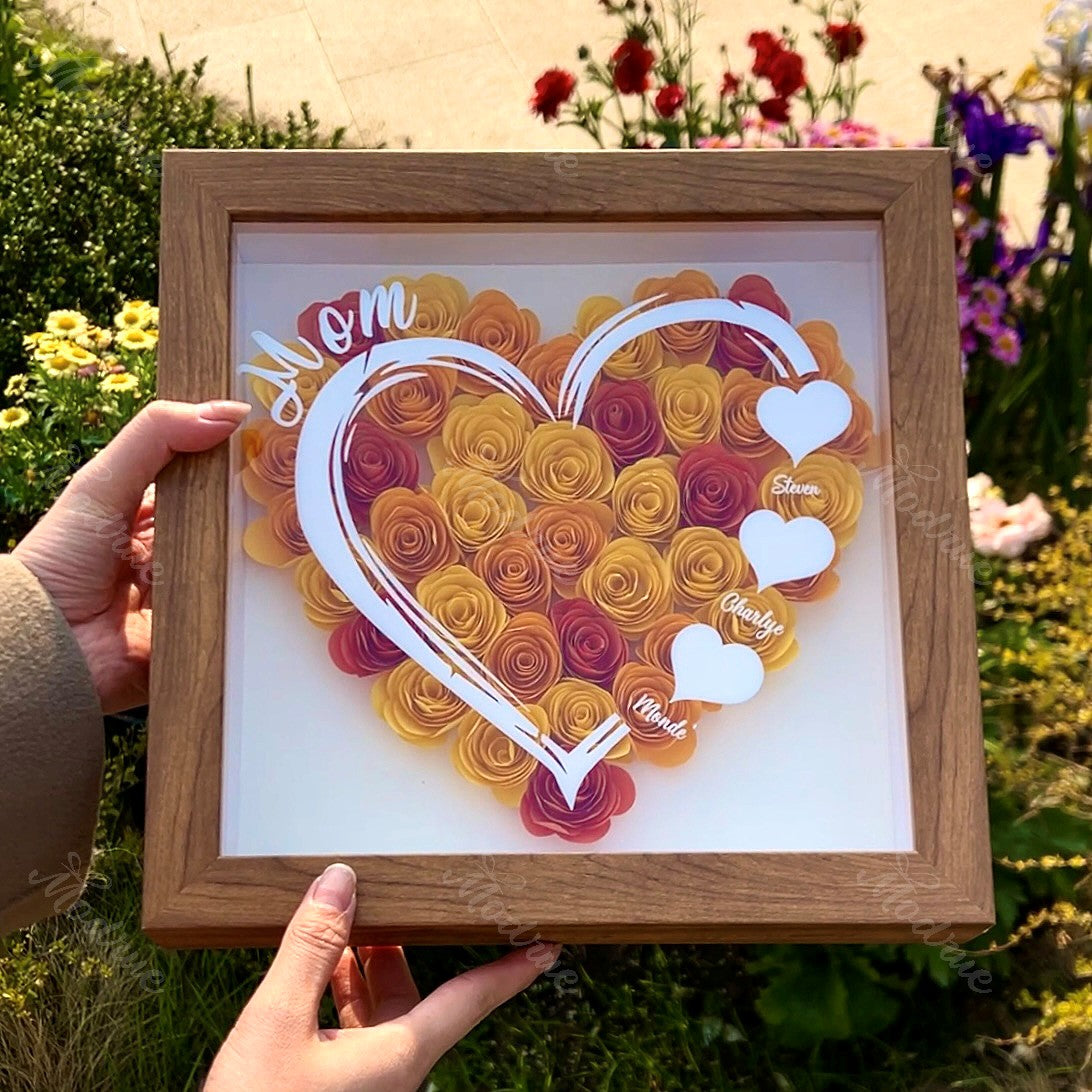 Mama herzförmiges Monogramm-Blumen-Schattenschachtel-Geschenk