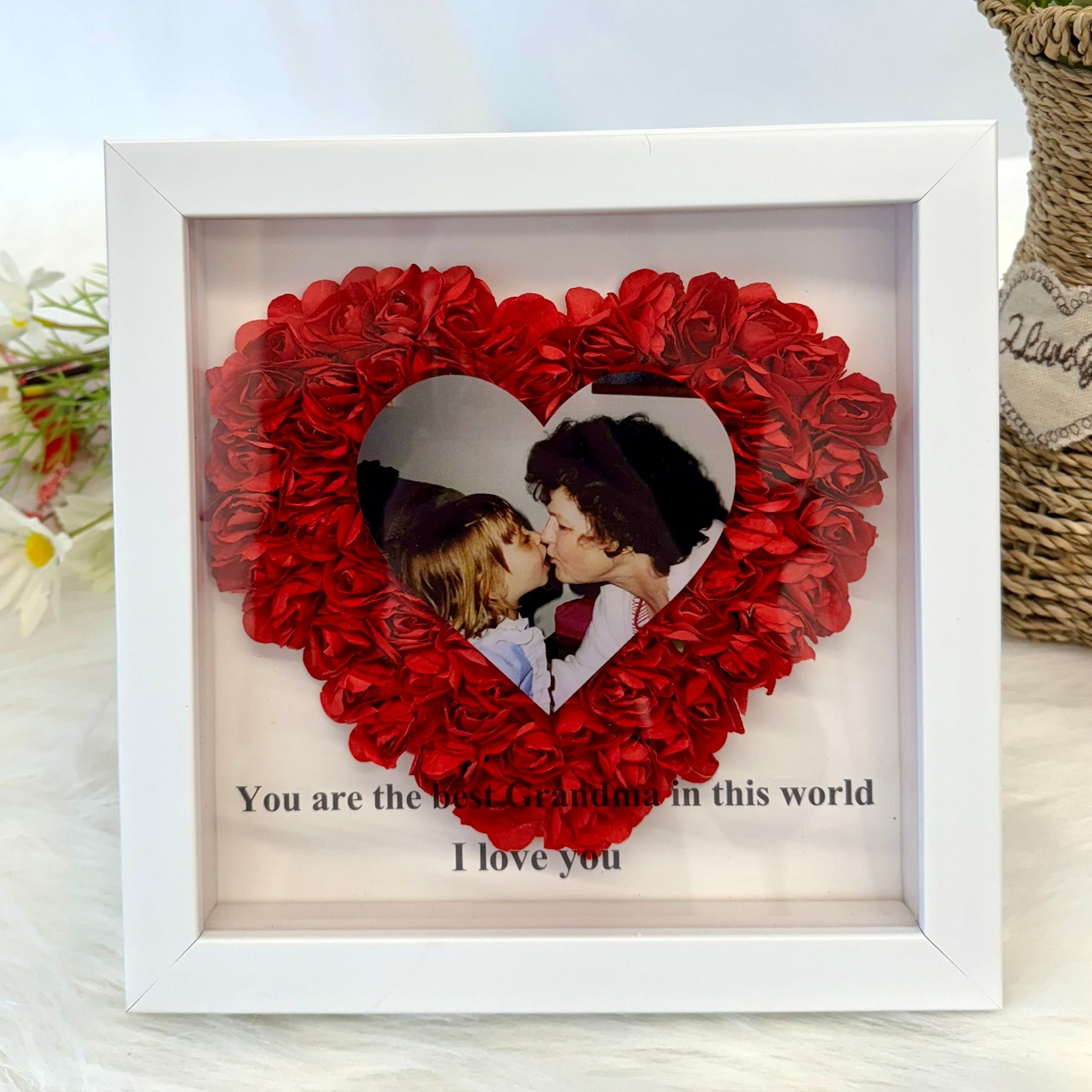 Mom Heart Shaped Monogram Flower Shadow Box with Photo