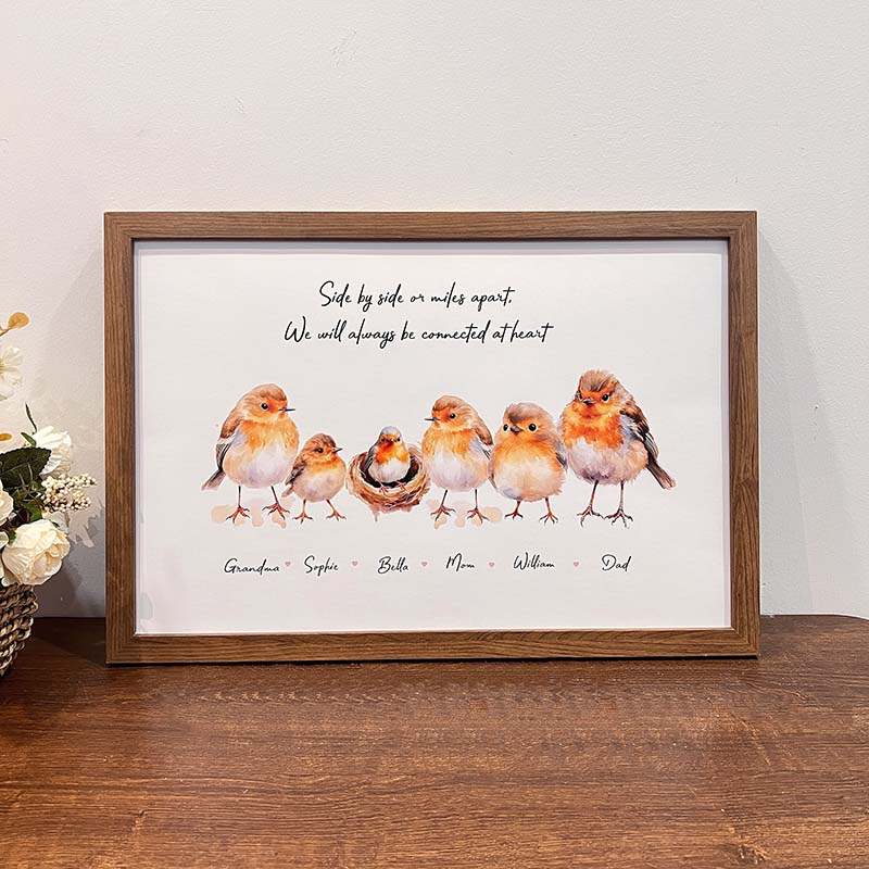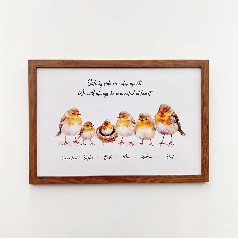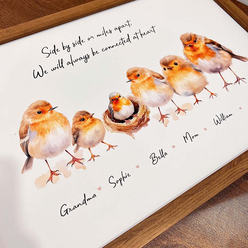 Then our product Personalised robins family portrait is a perfect choice. Whether as a wedding gift, a memento of a family gathering, or a holiday gift, it expresses deep blessings for home and family.
