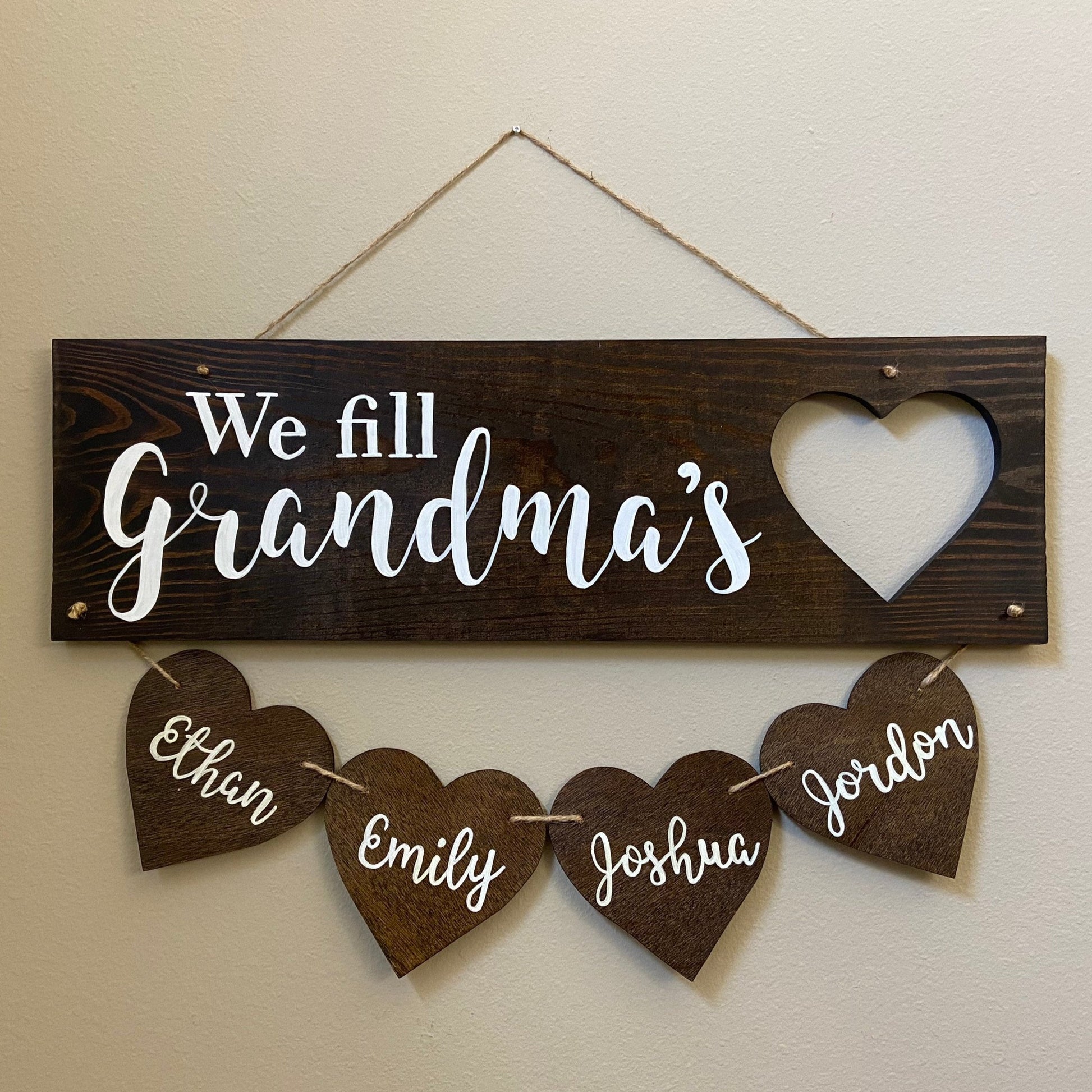 “We Fill _’s Heart” sign is the perfect personalized gift for grandparents, parents, aunts, uncles or anyone that has children in their life that are dear to them.