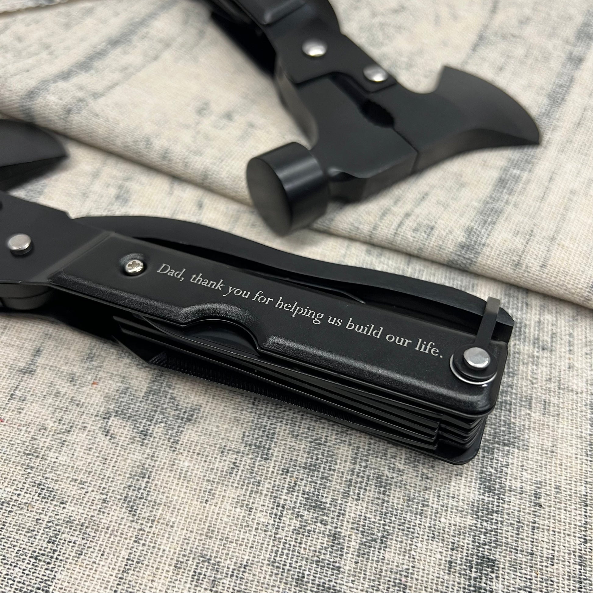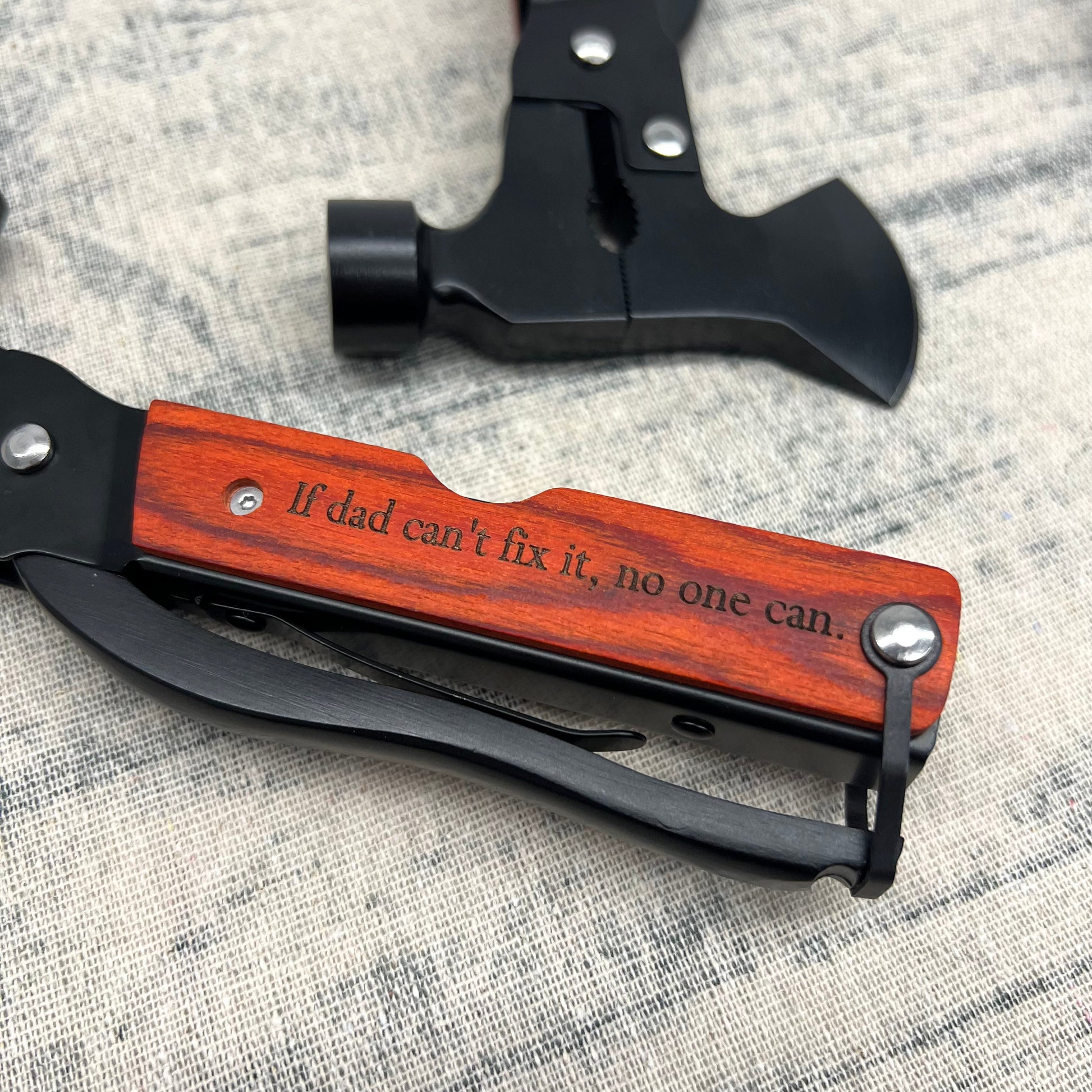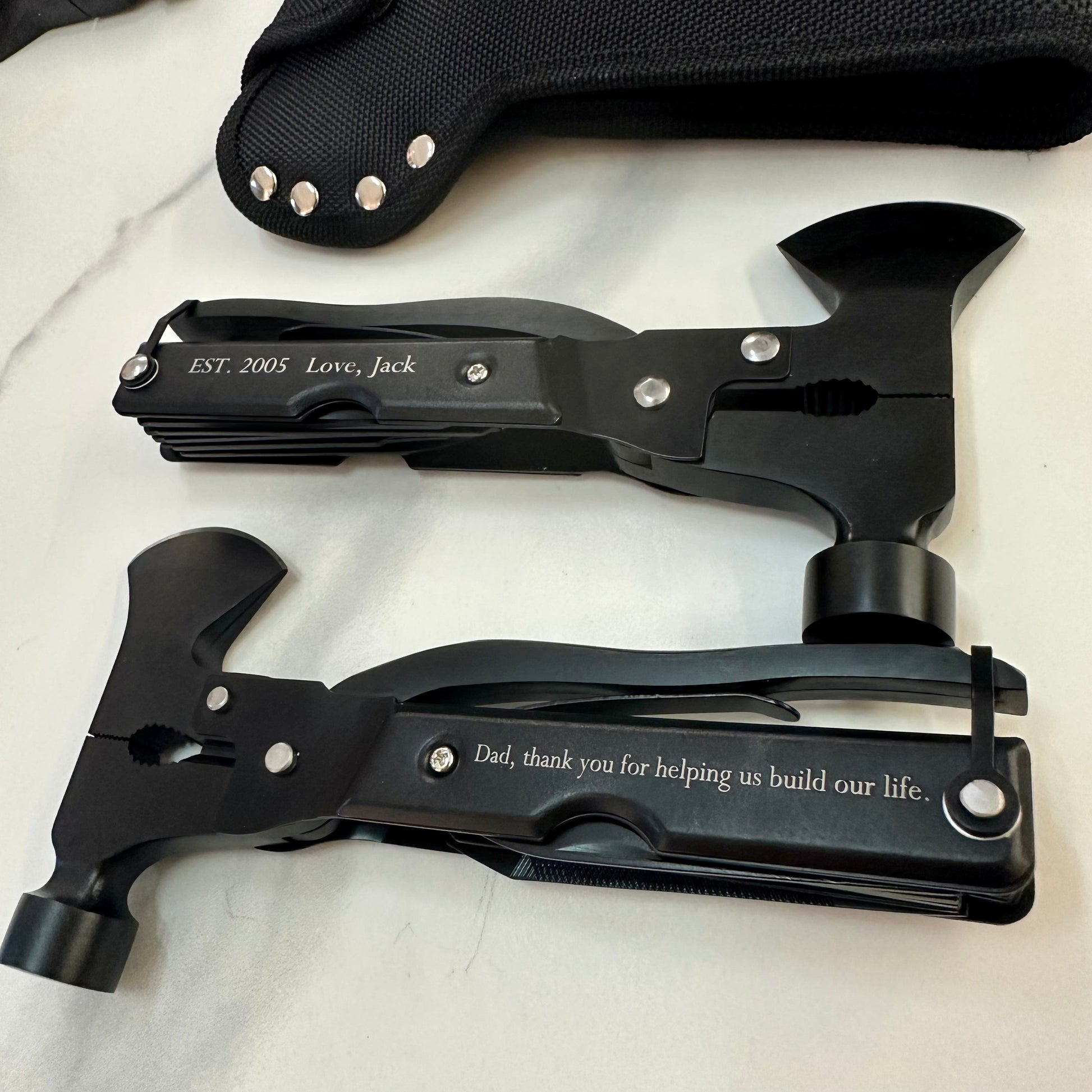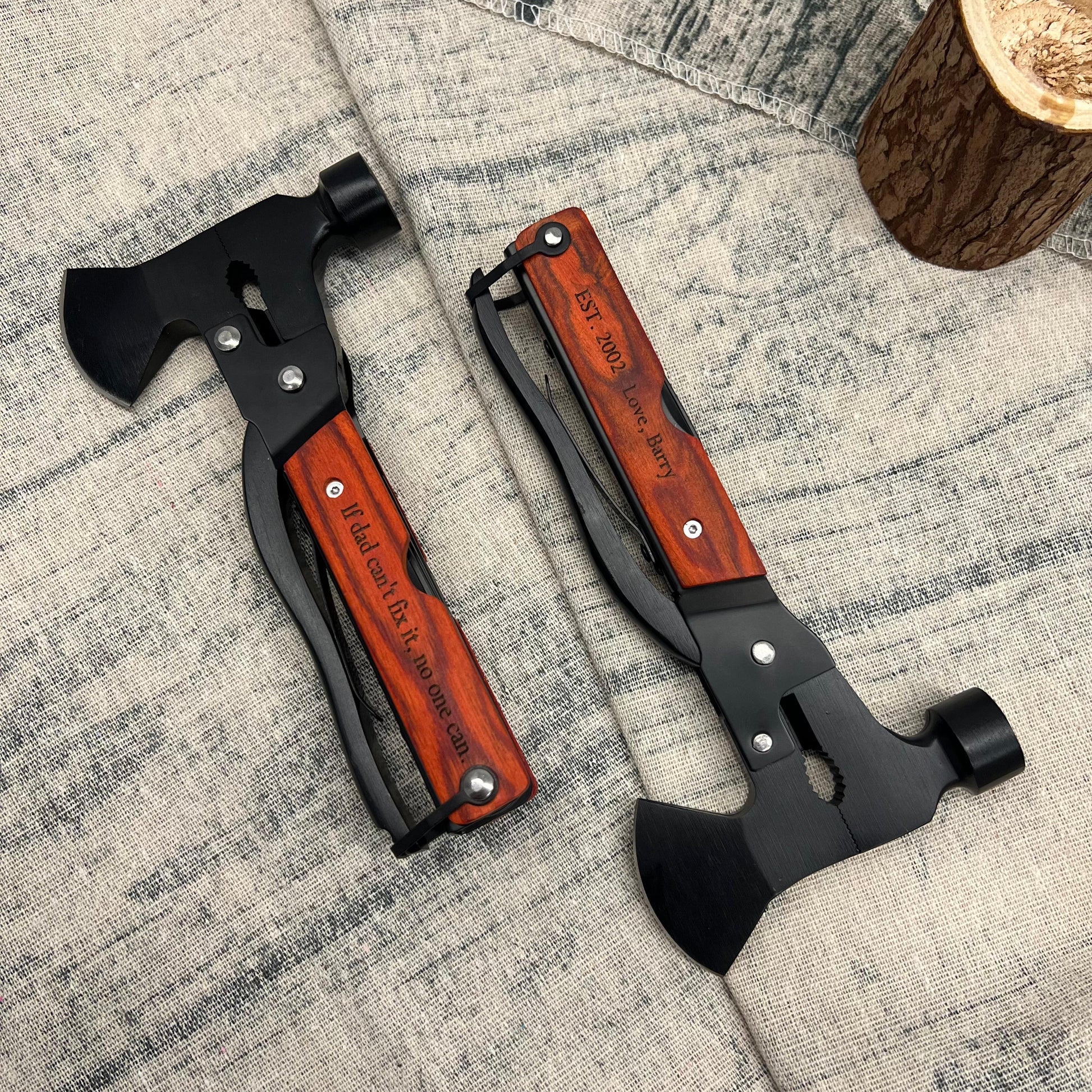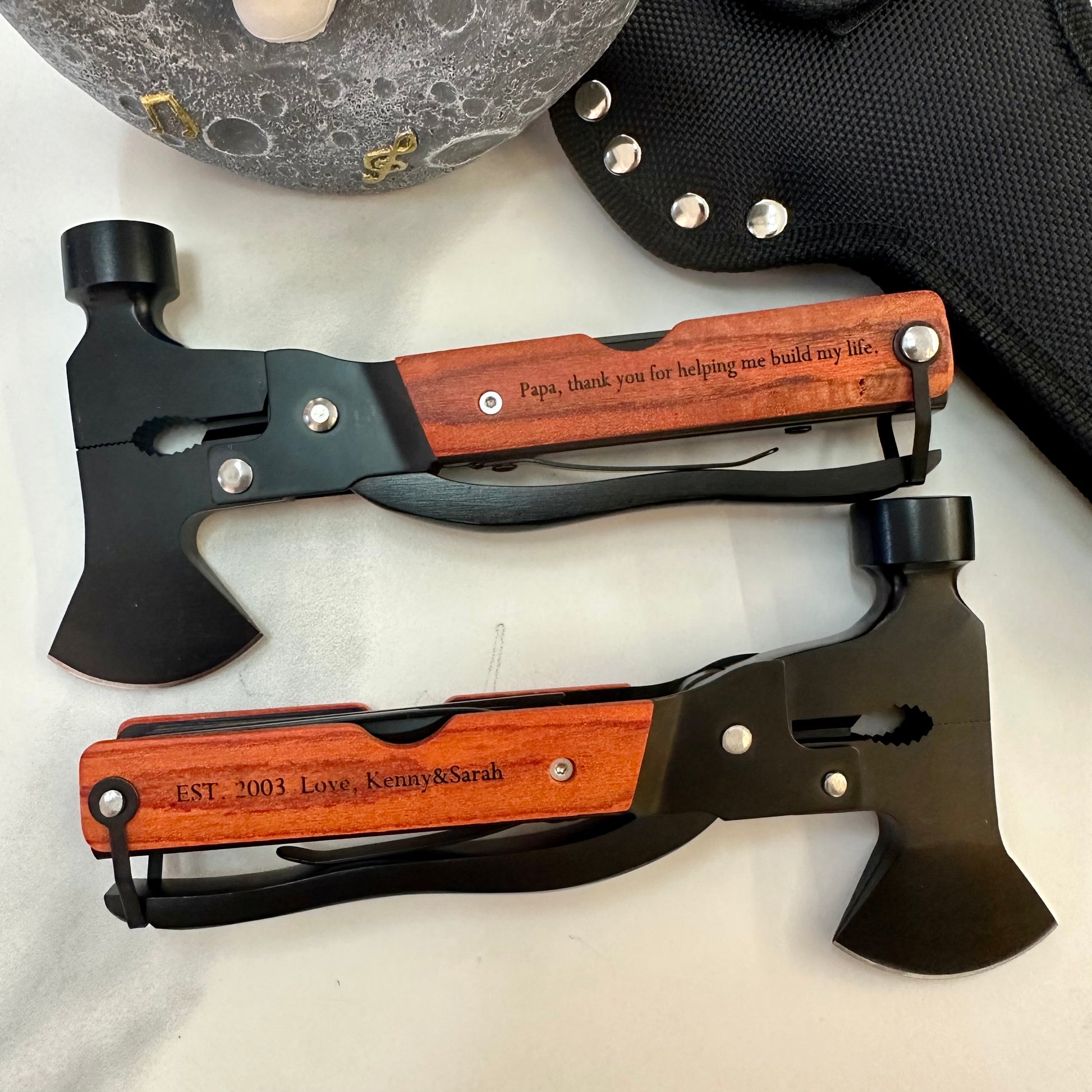 This is a 15-in-1 multi-functional hammer axe, made of high quality stainless steel, customized with exclusive blessings, name and year.