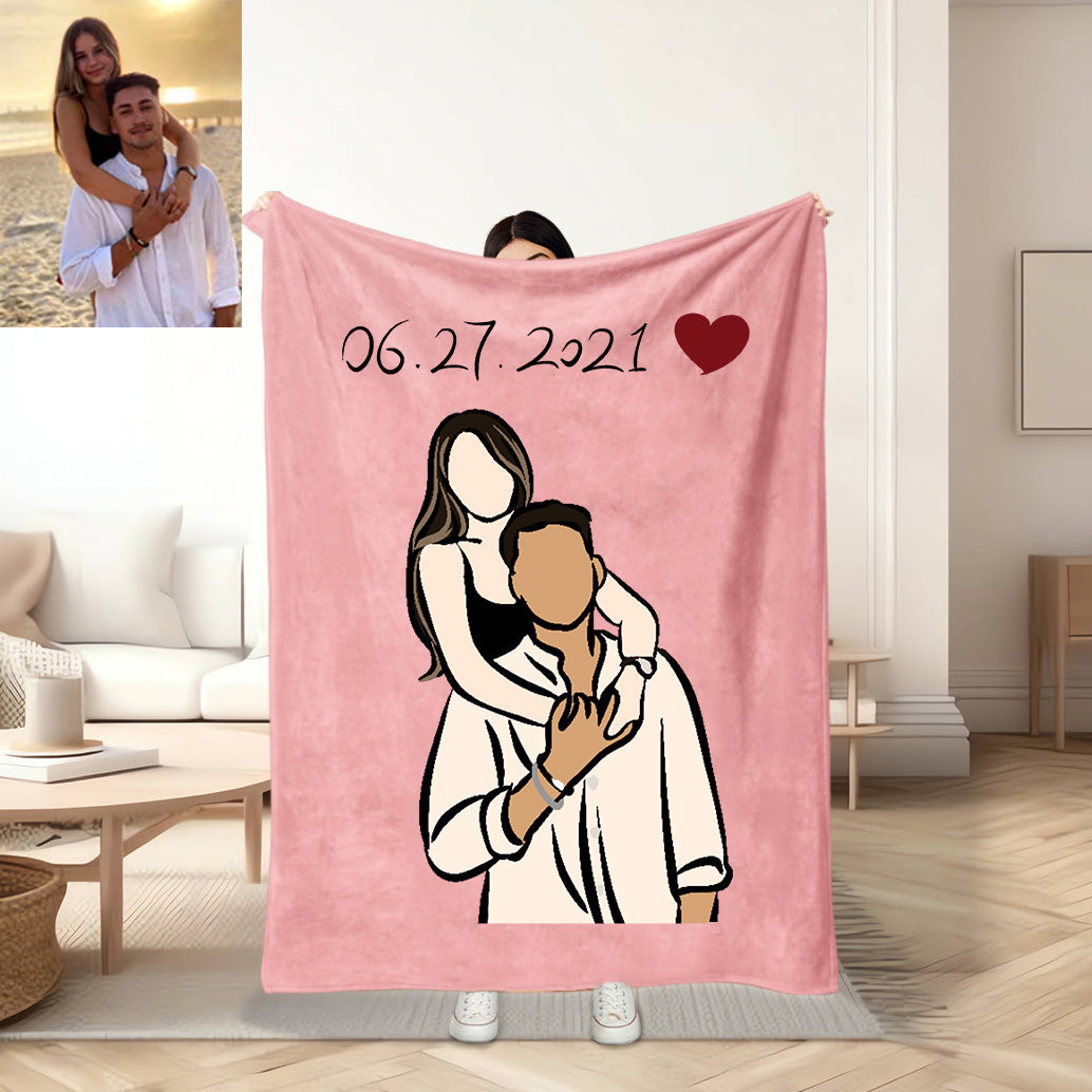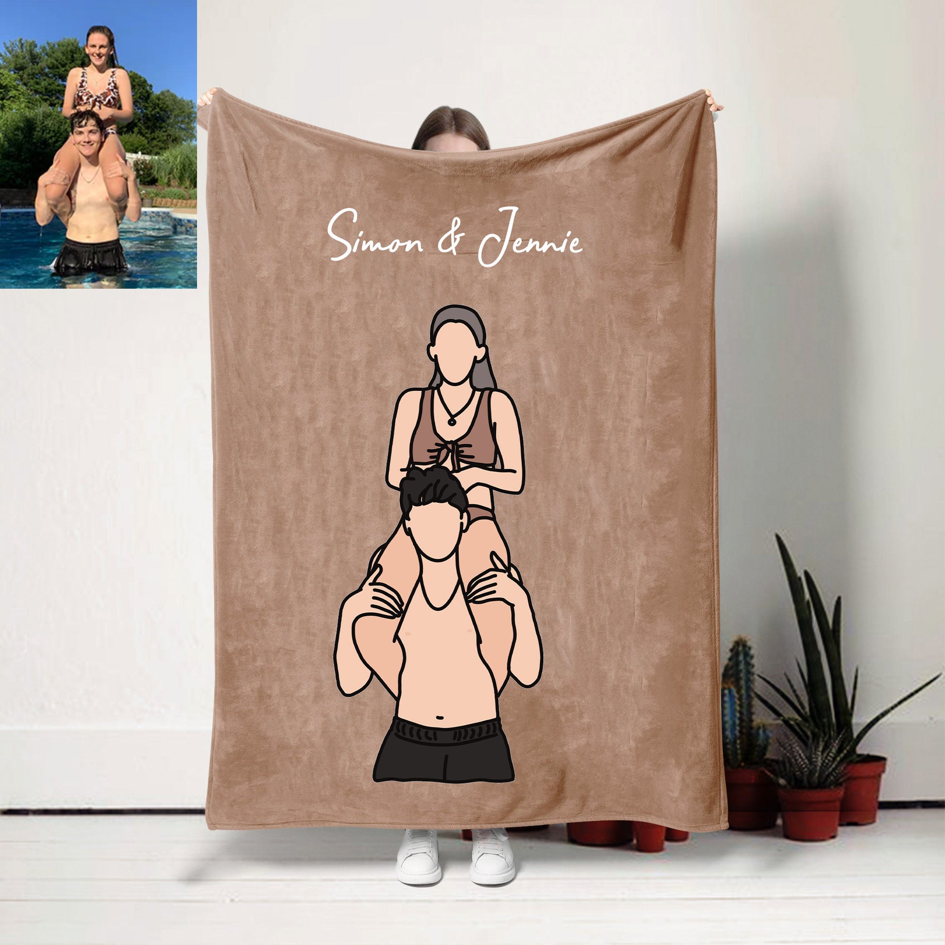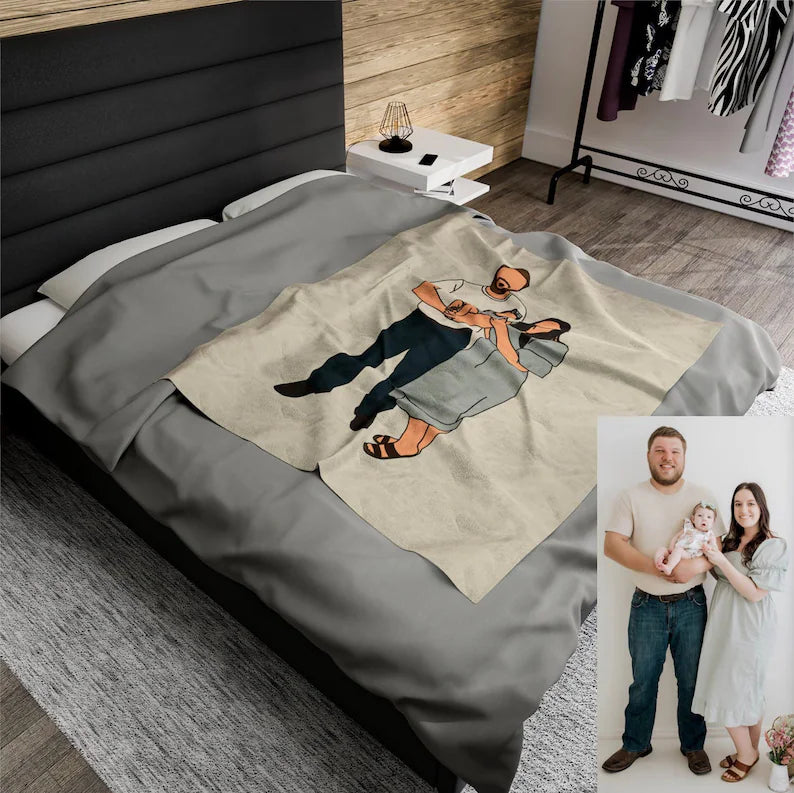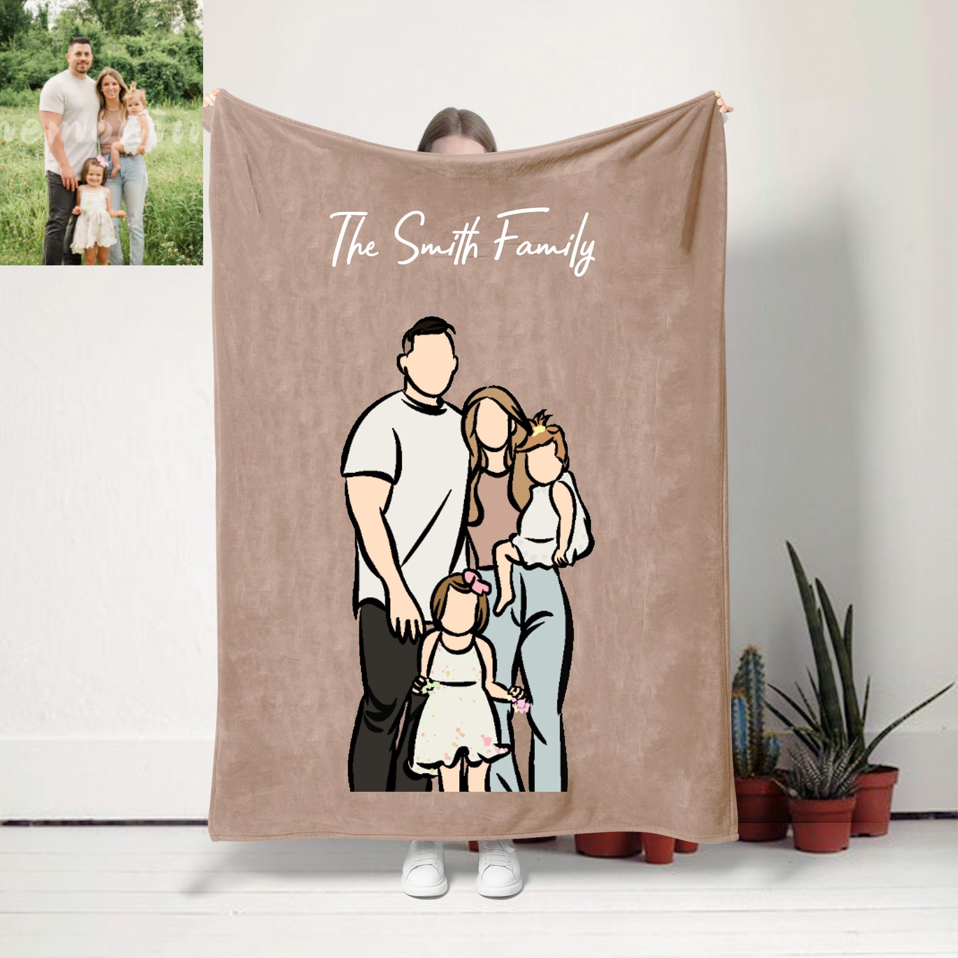 🎁Looking for the perfect gift idea? Look no further than our Photo Portrait Blanket! This unique and personalized blanket features a custom portrait from your favorite photo, creating a stunning Family portrait illustration or couple photo gift.