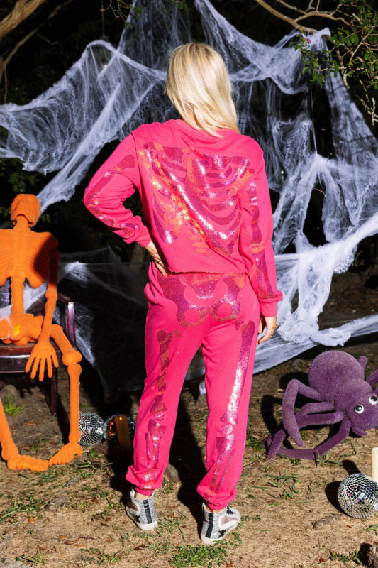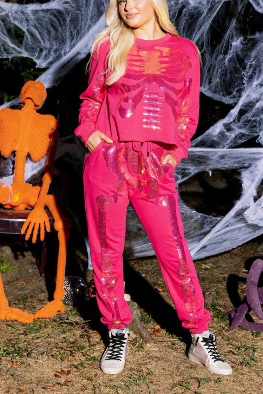 Round neck casual skull print sweatshirt & leggings two-piece set