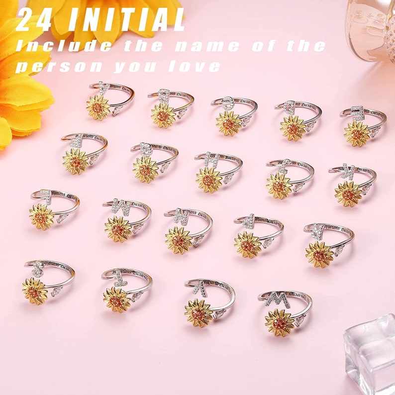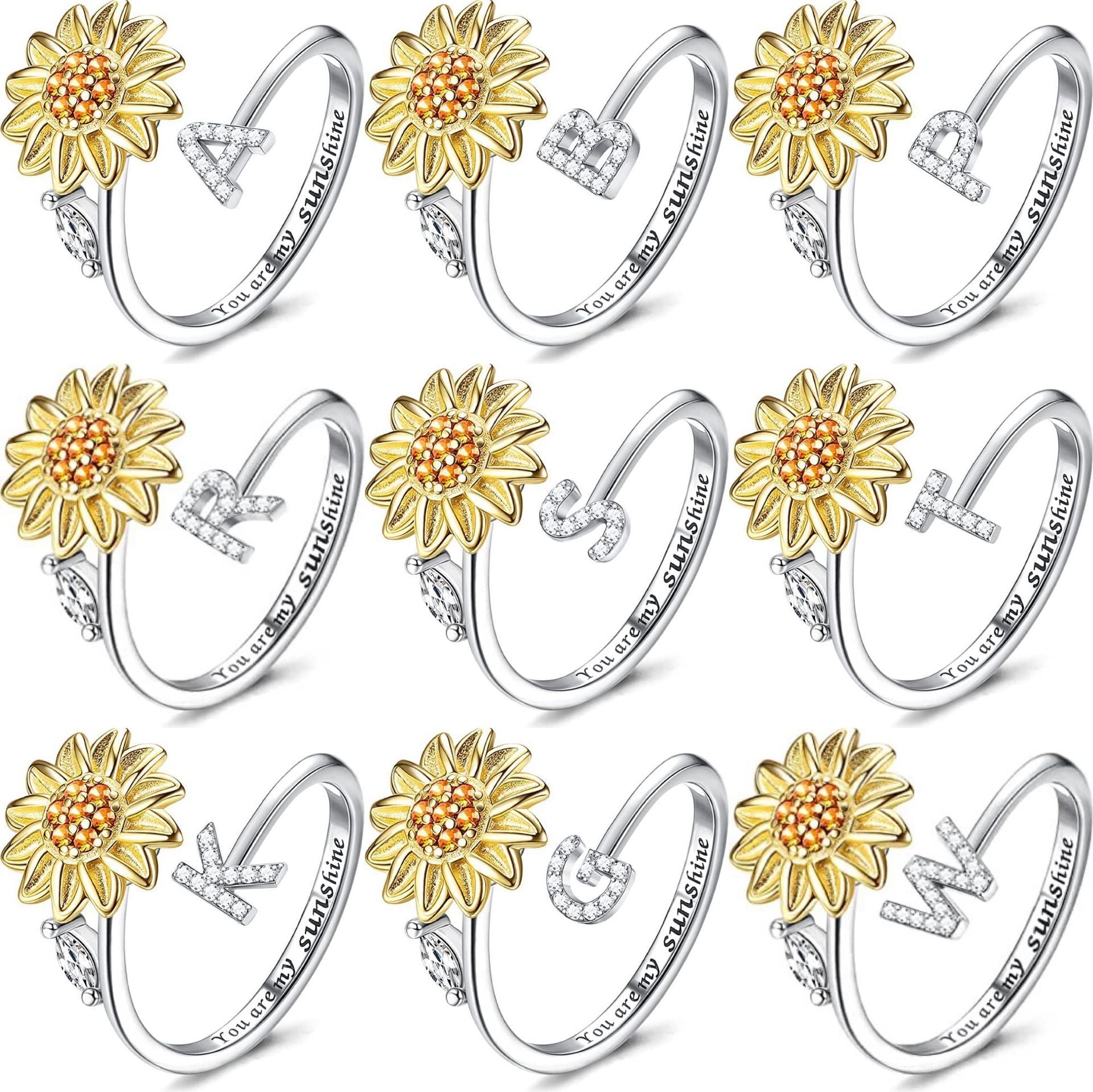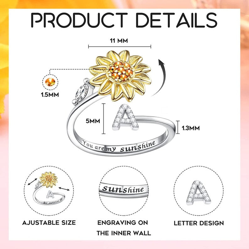 Wir haben die personalisierte Initiale mit dem Sonnenblumenring kombiniert, was ein perfektes und besonderes Geschenk für Ihre Lieben wäre. Jeder Buchstabe könnte eine Namensabkürzung sein, das wäre Ihr Name, der Name Ihres Freundes oder der Name Ihres Geliebten. Die Größe des Spinnerrings ist einstellbar und für die meisten Menschen geeignet.💍