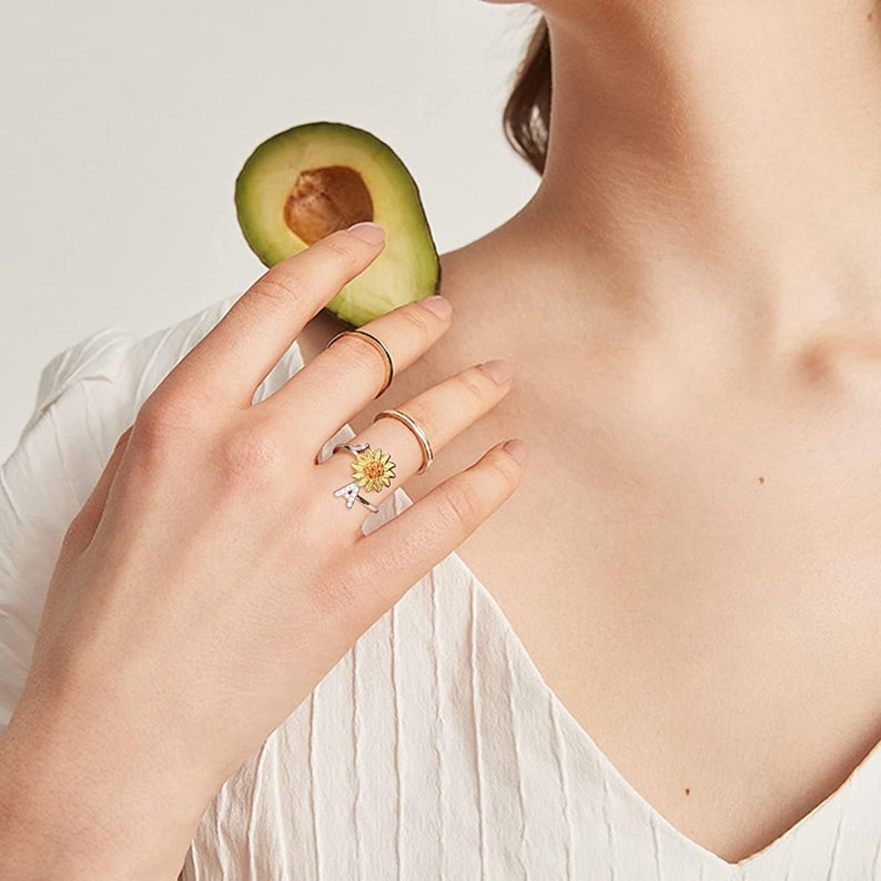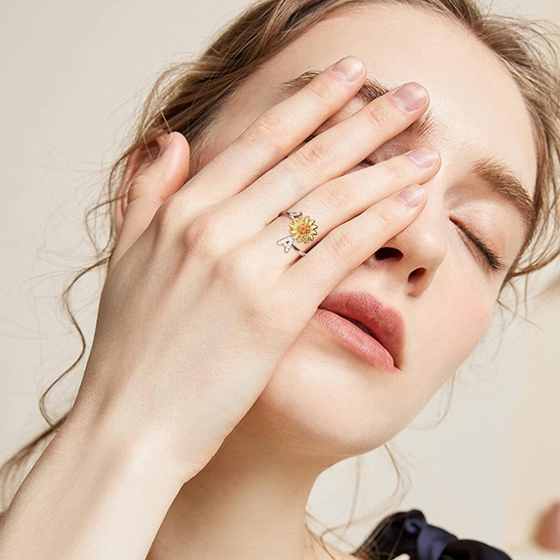 Stimmungsringe bieten meditative, entspannende, angstlösende, nervenberuhigende und fokussierende Effekte. Die Sonnenblume des Rings lässt sich sanft drehen, baut Stress ab und bleibt mit ihrem komplizierten Design stilvoll und edel.