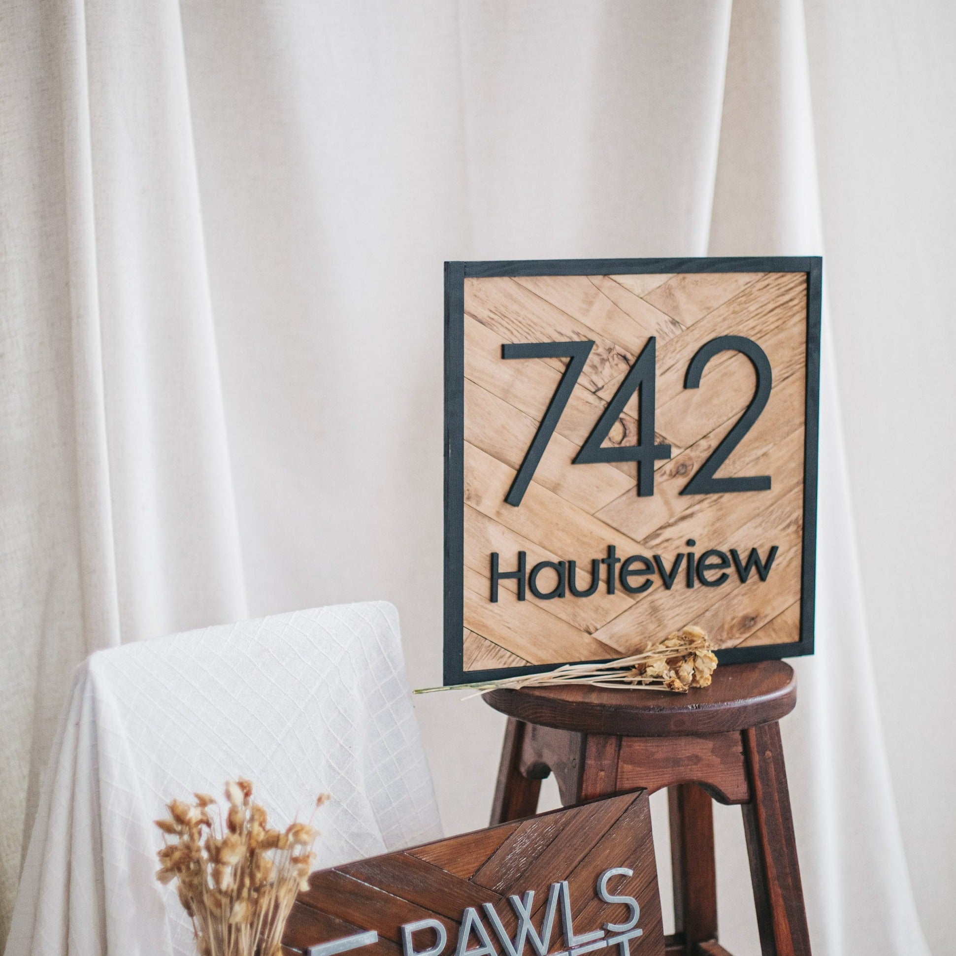 Looking for perfect inspirational and useful gifts for parents or friends? This stylish herringbone sign witht family name or house numbers is the best gift idea for Housewarming, Birthday, Wedding, Thanksgiving, Christmas, 5th Anniversary, or any other special moment.