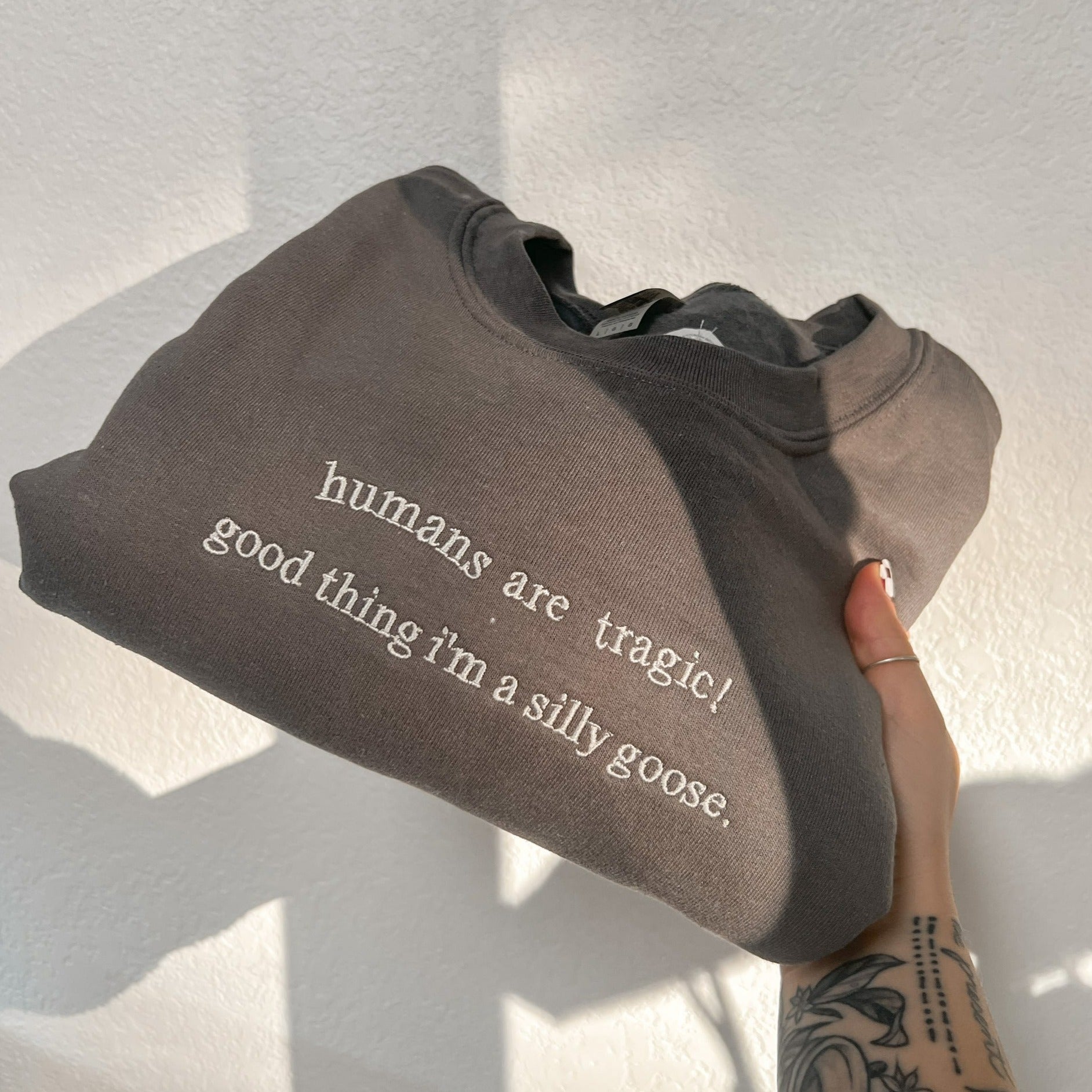 Humans are Tragic, Good Thing I'm a Silly Goose Embroidered Crewneck Sweatshirt