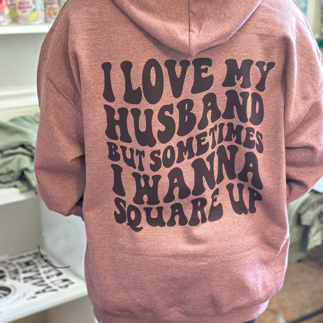 Show your playful side and support your partner with this “I Love My Husband/Boyfriend” T-shirt. Express your love and have a good laugh with this funny and punny design that declares “I love my husband… but sometimes I wanna square up!” Your significant other will get a kick out of this sassy-yet-adorable t-shirt.