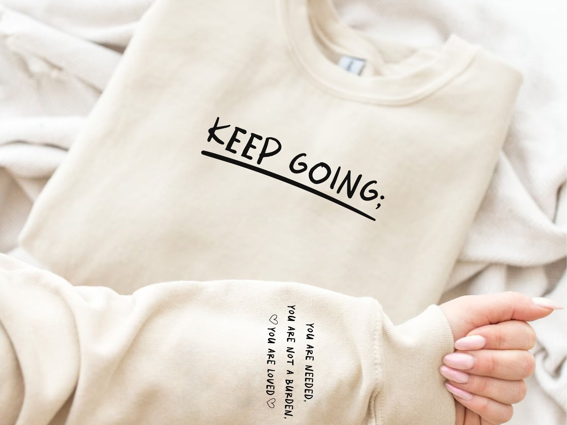 Keep Going 100 Reasons To Stay Alive Sweater, You Are Enough Sweatshirt Sleeve Print, Mental Health Matters, Self Care Sweater Inspirational Quote Crewneck, Aesthetic Be Kind, Mental Health, Tomorrow Needs You, You Matter