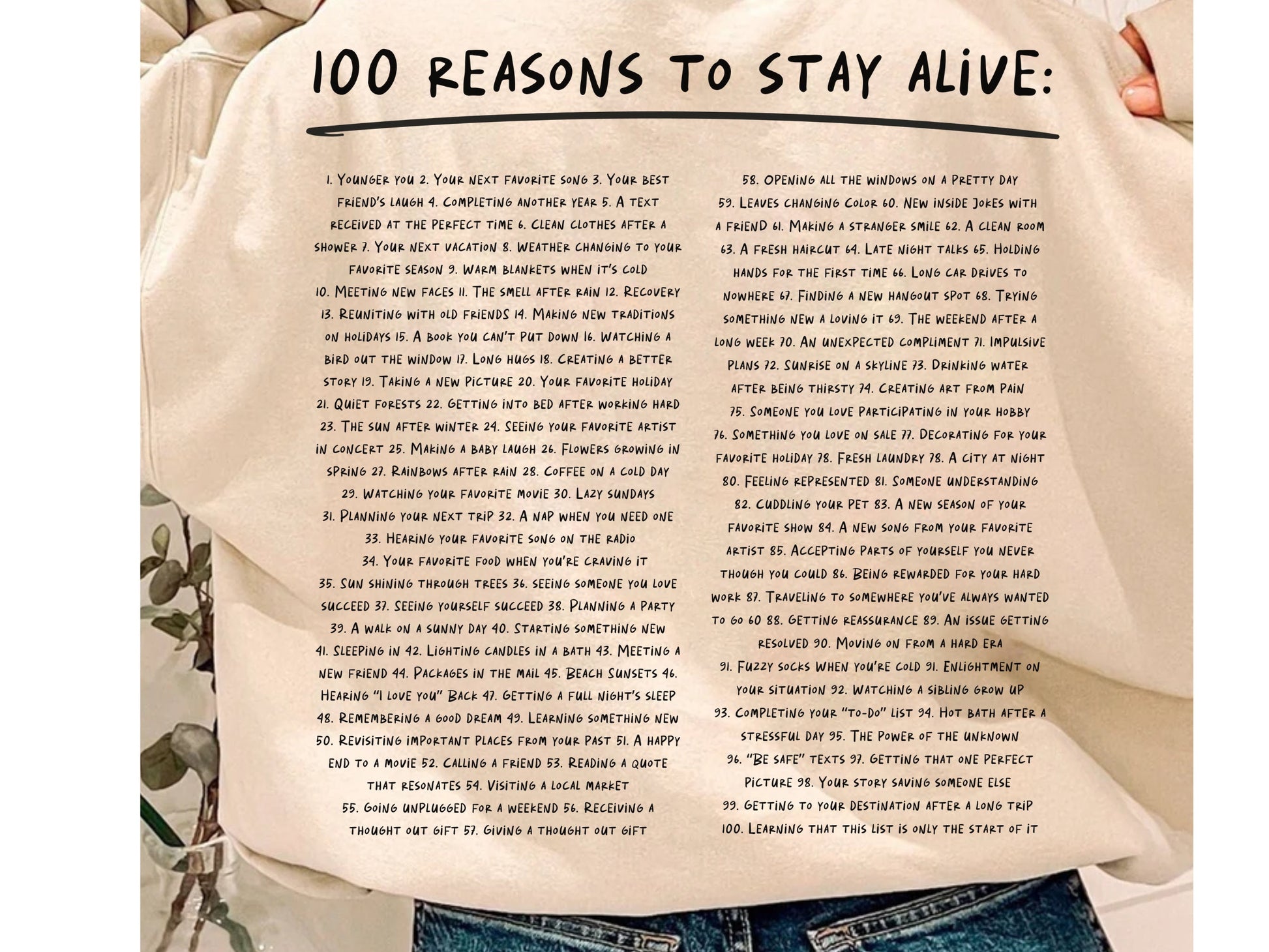 🎁Introducing our Keep Going 100 Reasons To Stay Alive Sweater!