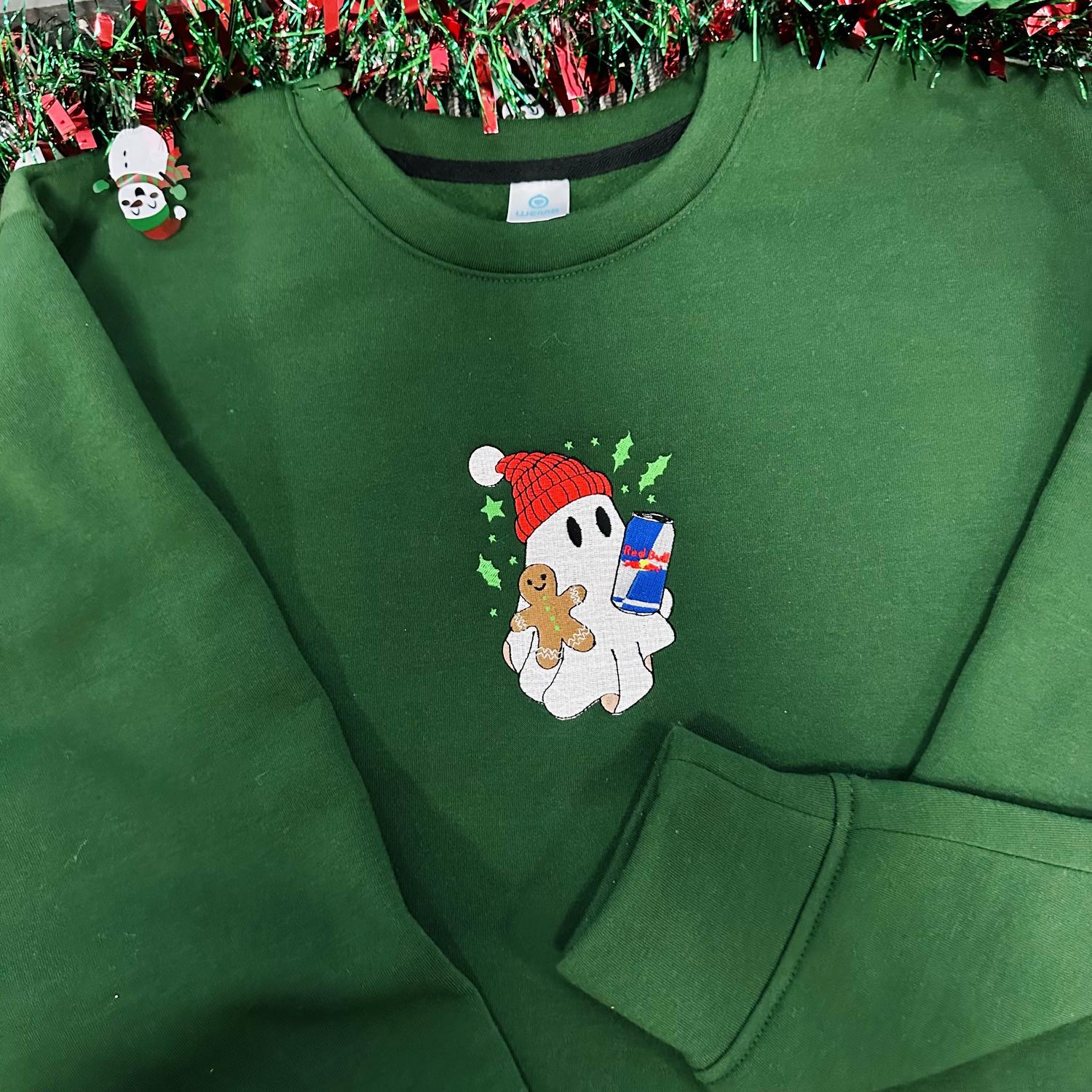 👻 Sip in Style with the Ghost Drinking Embroidered Sweatshirt