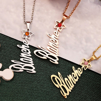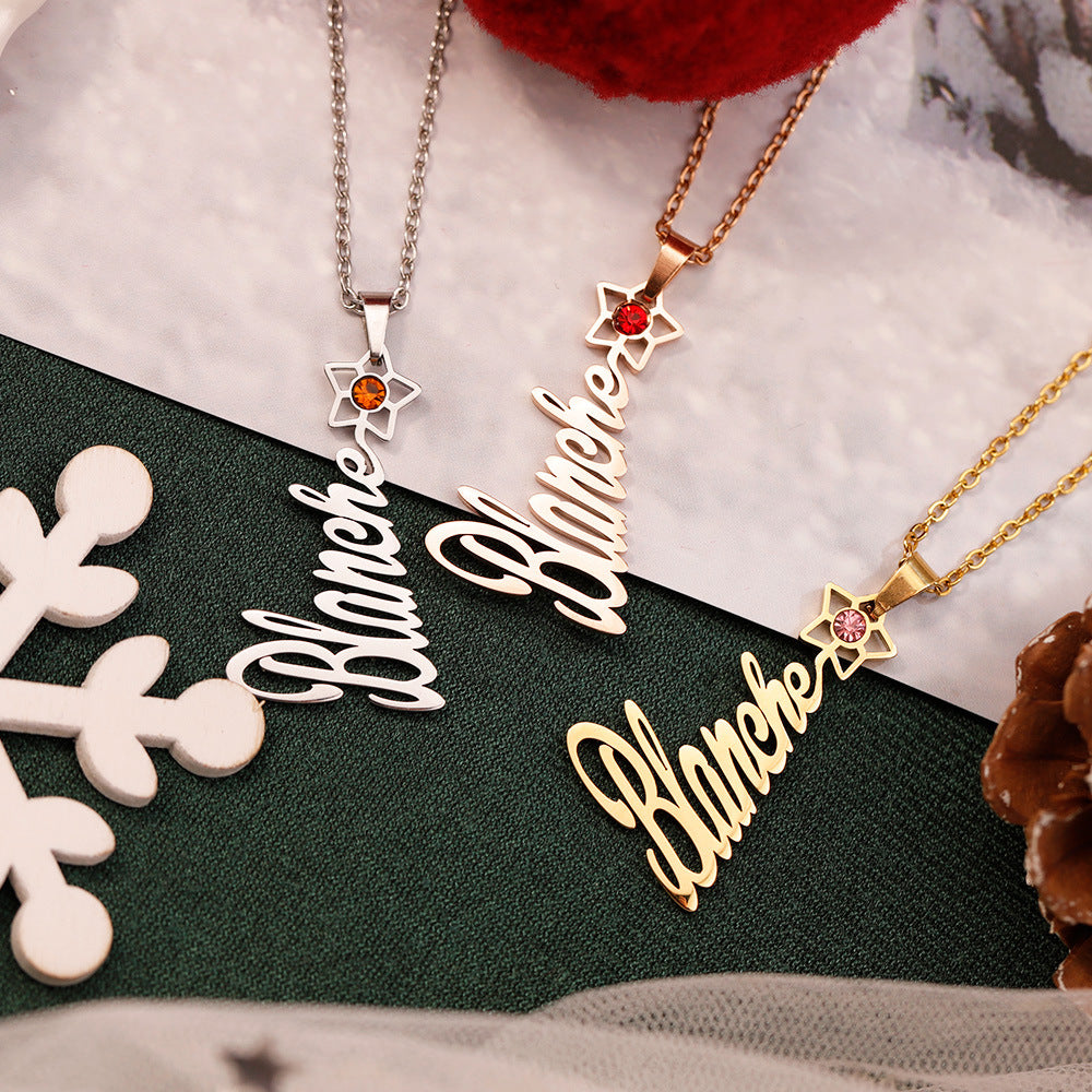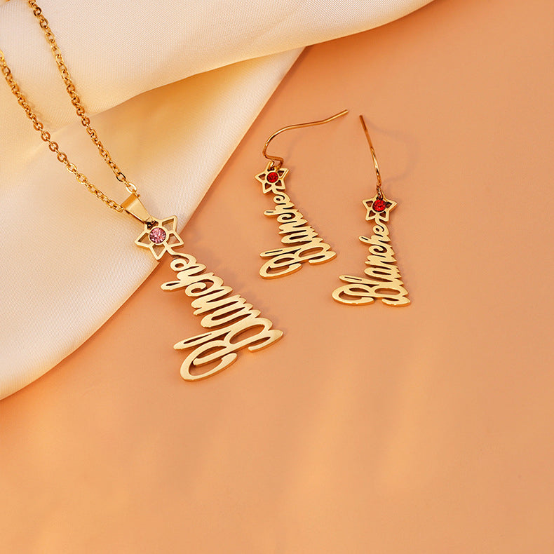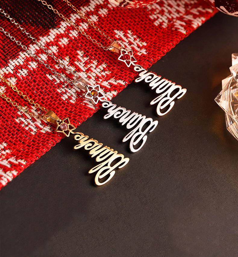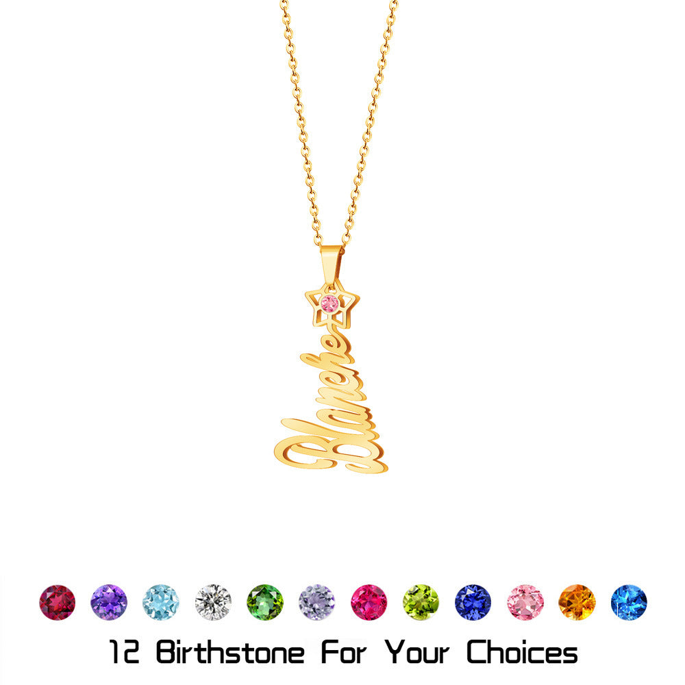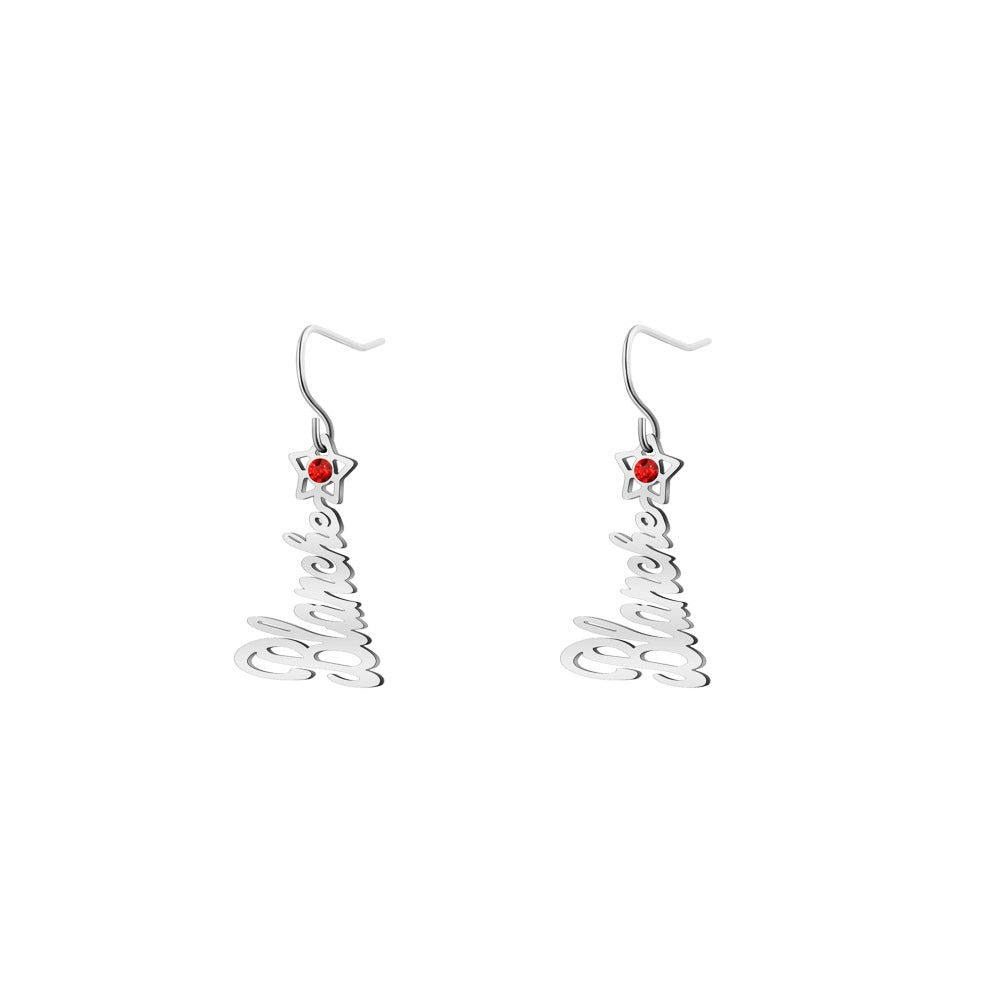 This name and birthstone jewelry or earrings are designed for you and your loved one's name. You can provide us with your or your loved one's name and we'll make it look like a Christmas tree and let it give you a wonderful Christmas!