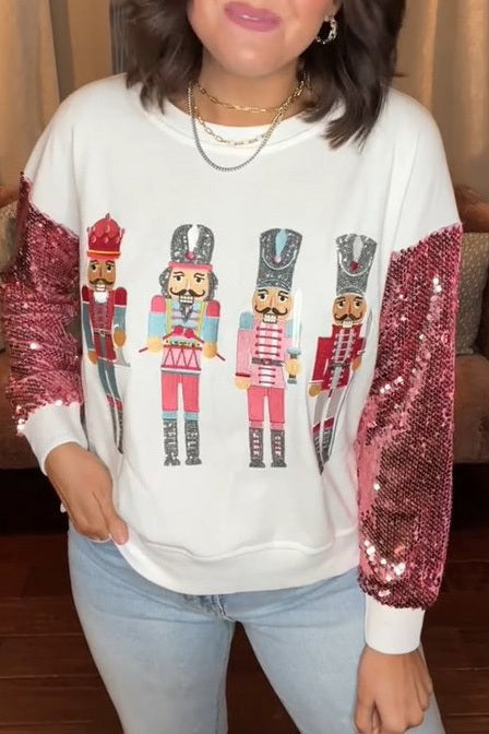 Christmas sequin print crew neck long sleeve sweatshirt