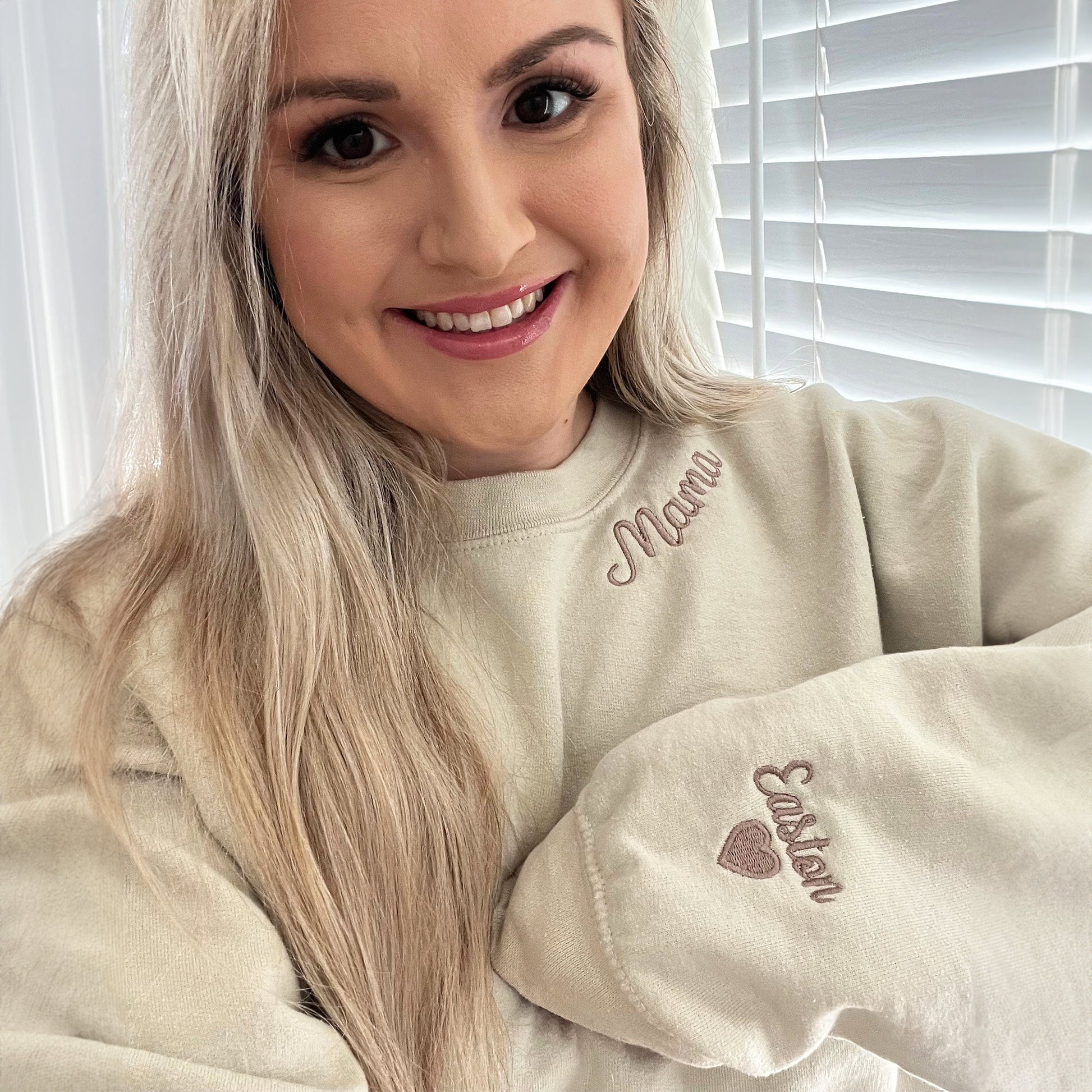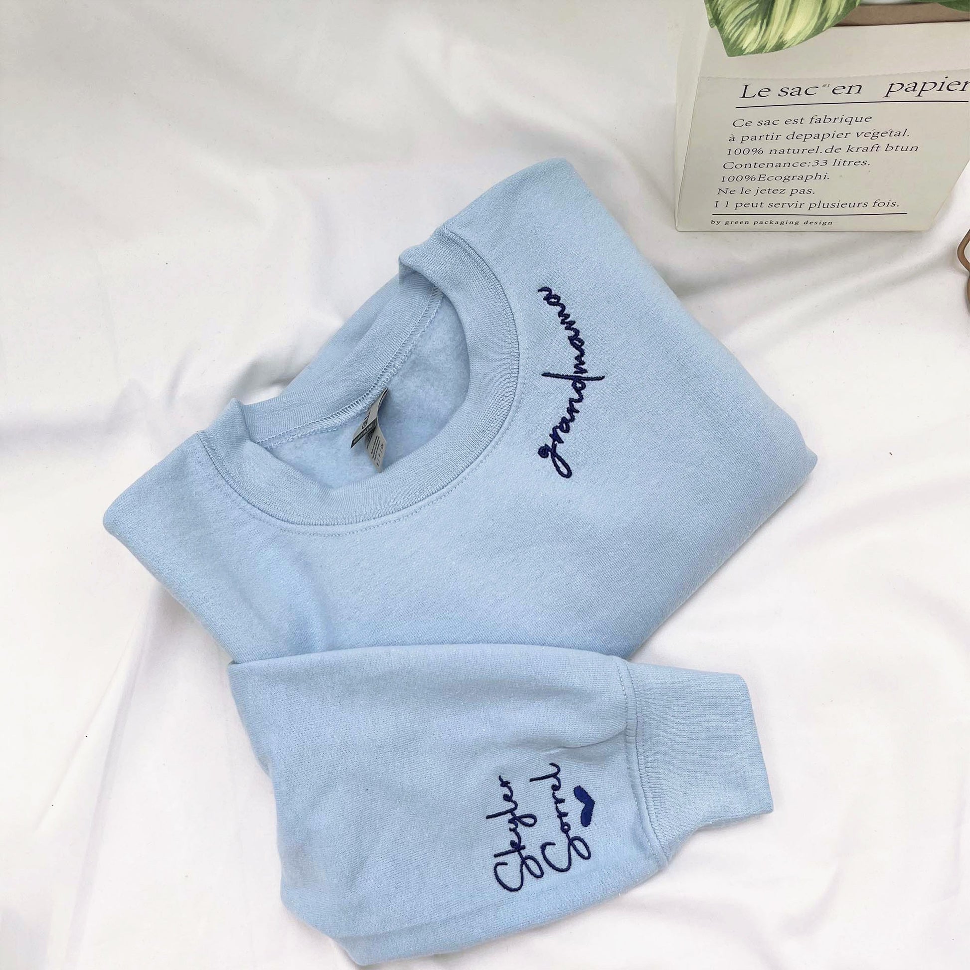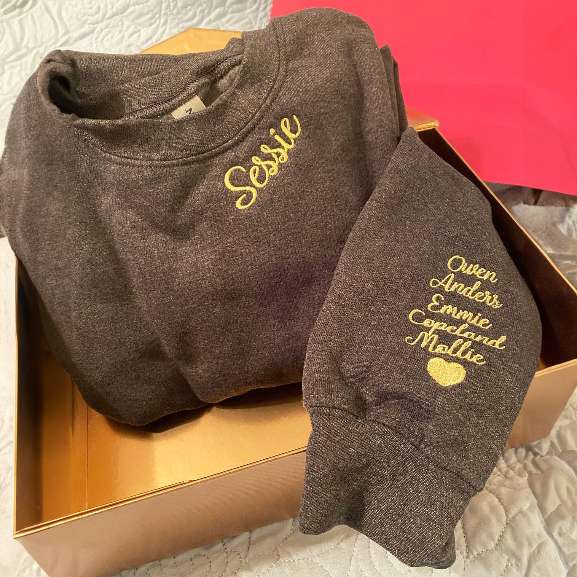 Custom Grandma Sweatshirt with Children Name on Sleeve