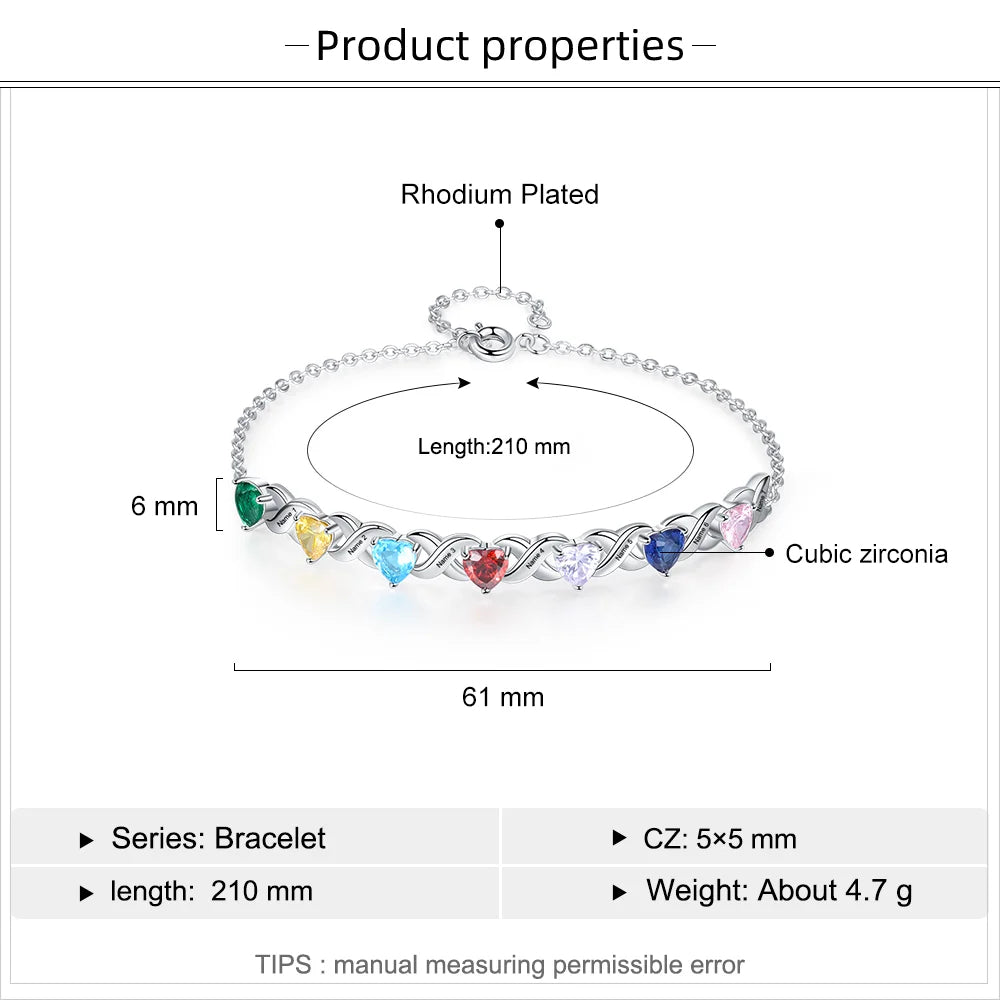 Design Inspiration:This Bracelet-Simply choose up to 7 crystal birthstones and provide up to 7 names of family members to grace a stunning garden of love you can wear with pride. Heart and flower birthstone design express your love for her, you can custom names and choose birthstones of the important person,it is unique and meaningful.