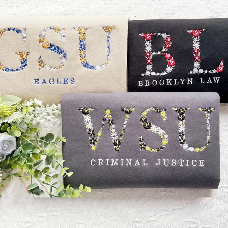 Inspired by the beauty of nature and the timeless appeal of fashion. our embroidered floral monogram college sweatshirt is designed to blend style with personalization. Each sweatshirt is crafted with care and attention to detail. ensuring the piece you receive is as unique as you are.