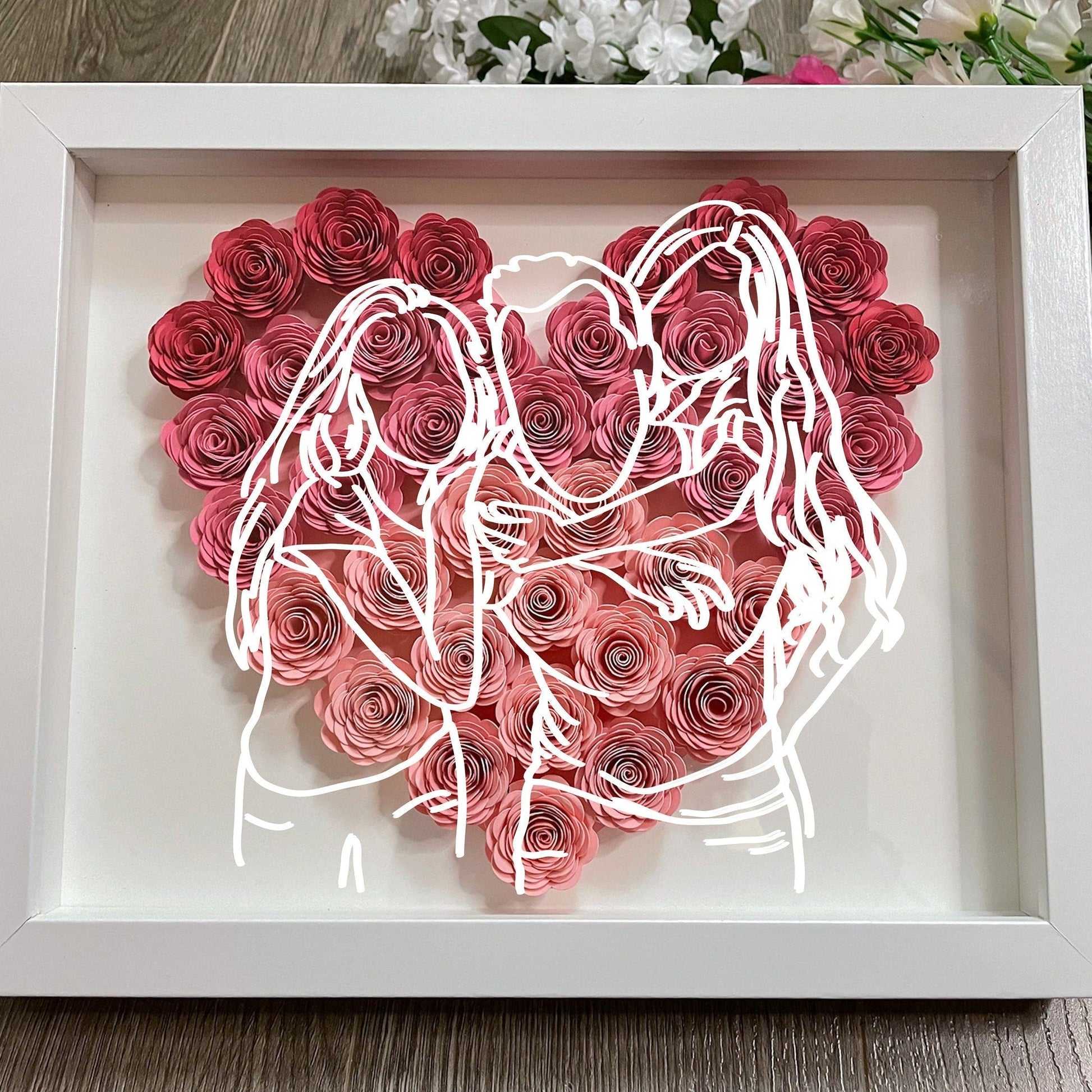 Custom Heart Line Art Flower Shadow Box