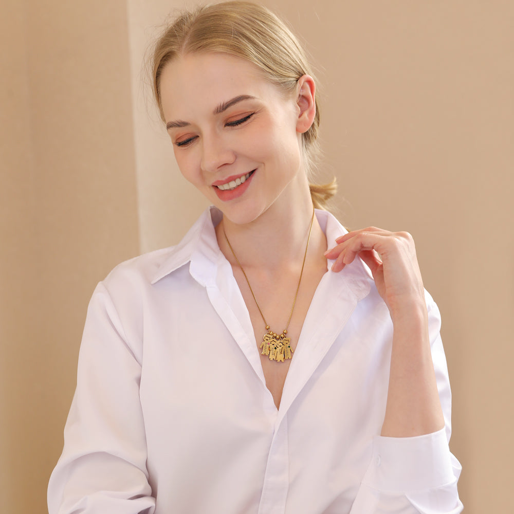Mother's necklace with engravable children's charms, each baby charms can be engraved with the child's name and inlaid with a birthday stone representing the month of birth, this is a meaningful gift for mother, nothing can describe the greatness of maternal love, this gift is means a lot to her, order now!